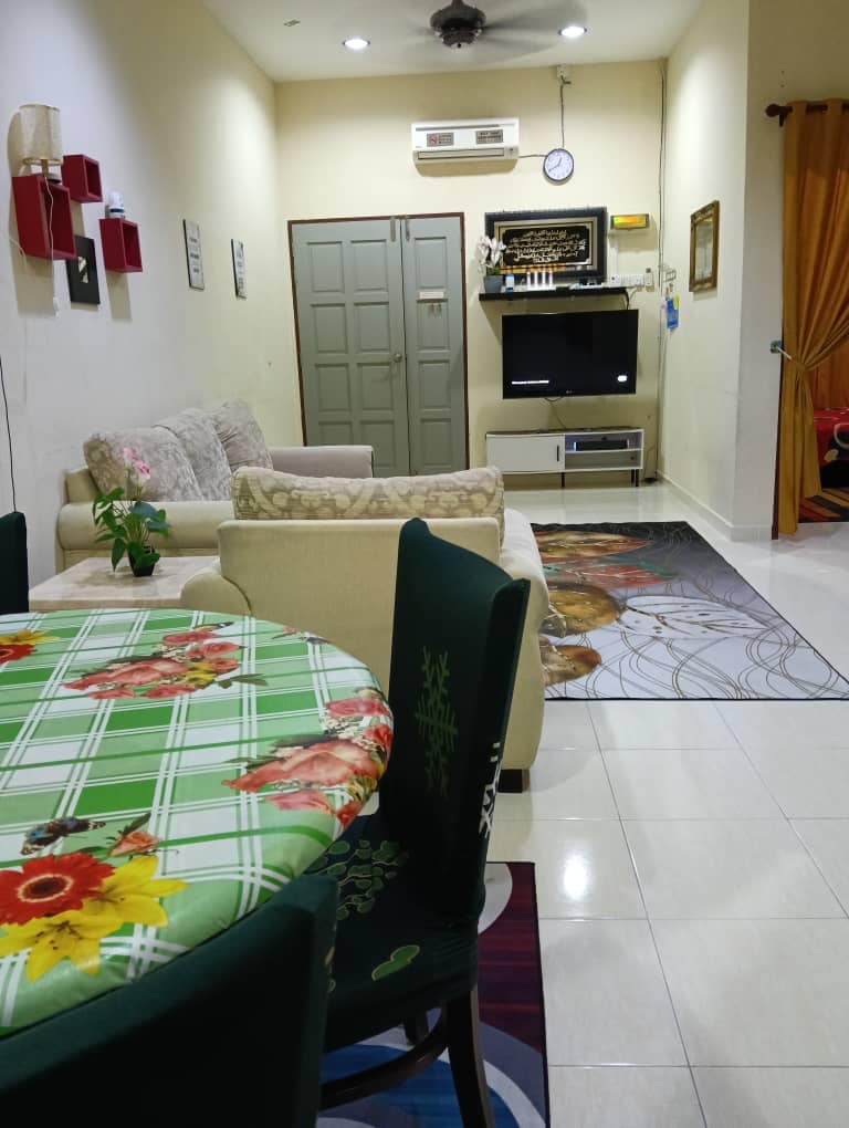 Muslim-friendly 3BR terrace house in Taman Intan, Kemaman. Includes AC, WiFi, TV (Njoi), PS4 Gaming console, 2 bathrooms, full kitchen (fridge, rice cooker, kettle,coway,microwave,toaster), washing machine, iron, and prayer mat. Fits up to 9 guests. 4 car parks (2 inside gated area). Near Pantai Teluk Mak Nik, surau, groceries & top food spots. Great for families. Check-in 3PM, check-out 12PM.