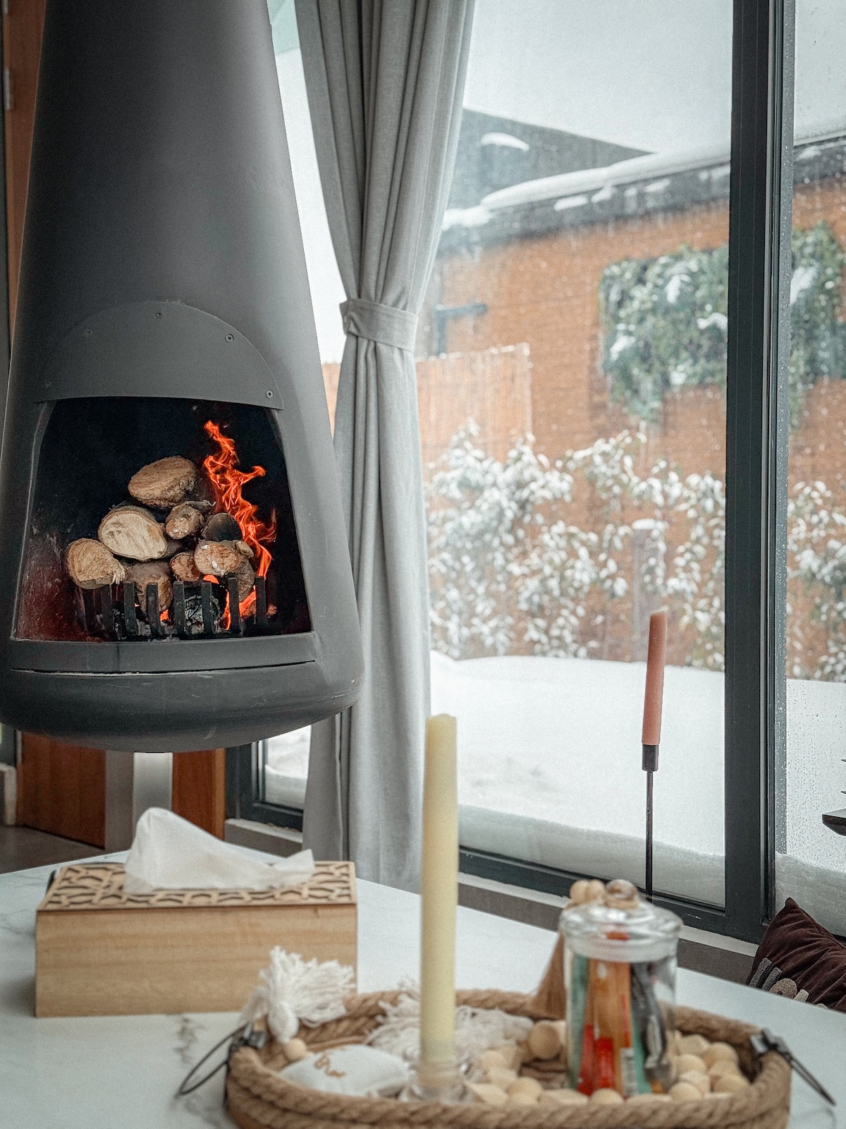 Situated in the middle of the nature the V square resort offers you a calm, serene and luxurious stay, the Vulcan Chalet fits 2 adults and it includes a fire place , a fully equipped kitchen and an outdoor seating with a big garden, and fire pit for a night full of stars