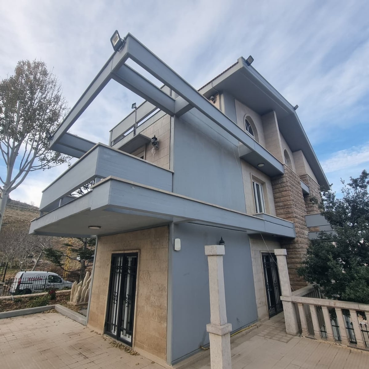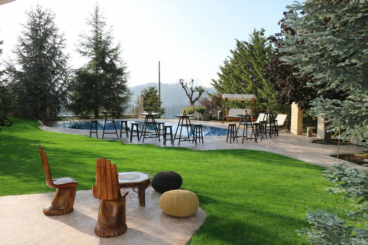 Our dream house in the Lebanese mountains is a haven of peace. Located in Kfour, Ghidras, this site offers complete immersion in nature. Designed by an architect, two guest houses of pine wood blend with the landscape and ancient pine trees, providing thermal comfort. Just a five-minute walk away, several beautiful hiking trails begin. Numerous activities include hiking trails, local festivals, walks, sunbathing, barbecues, a jacuzzi, and a pool (five minutes by car). Contact us for more info.