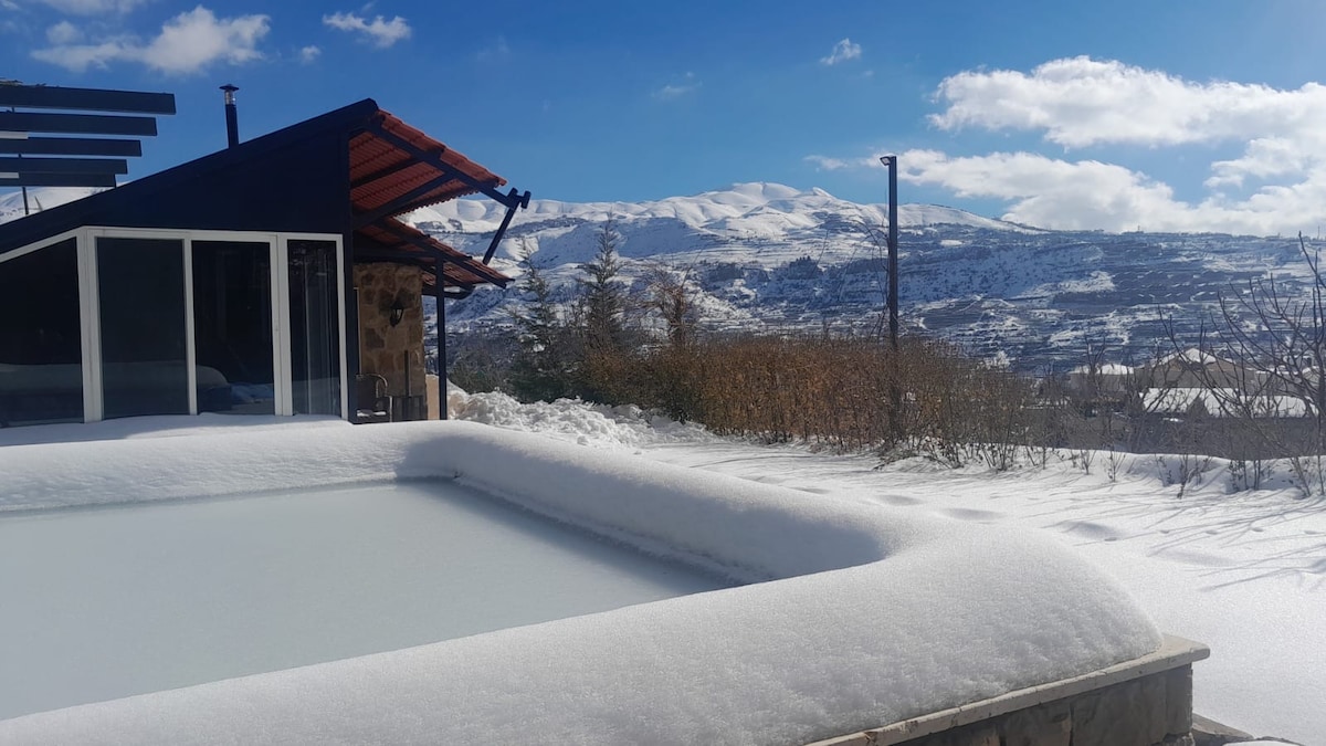 All reservations include concierge, 24/7 electricity, trip planning, and free parking. ★ "Loved the place, host is super helpful." 200m² simplex with large garden and breath taking views. ☞ No checkout rules ☞ 24/7 Electricity & Heating ☞ Baby Crib and High Chair Free of Charge Upon Request ☞ 5 Minute Drive From Mzaar Ski Resort ☞ HD TV with Netflix ☞ Fast Wifi ☞ Fireplace