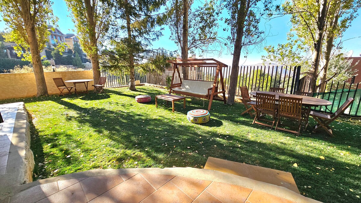 All reservations include concierge, 24/7 electricity, trip planning, and free parking. ★ "Loved the place, host is super helpful." 200m² duplex with large garden and breath taking views. ☞ Ski in // Ski Out ☞ No checkout rules ☞ 24/7 Electricity & Heating ☞ 1 Minute Walk From Mzaar Ski Resort ☞ HD TV with Netflix ☞ Fast Wifi ☞ Fireplace