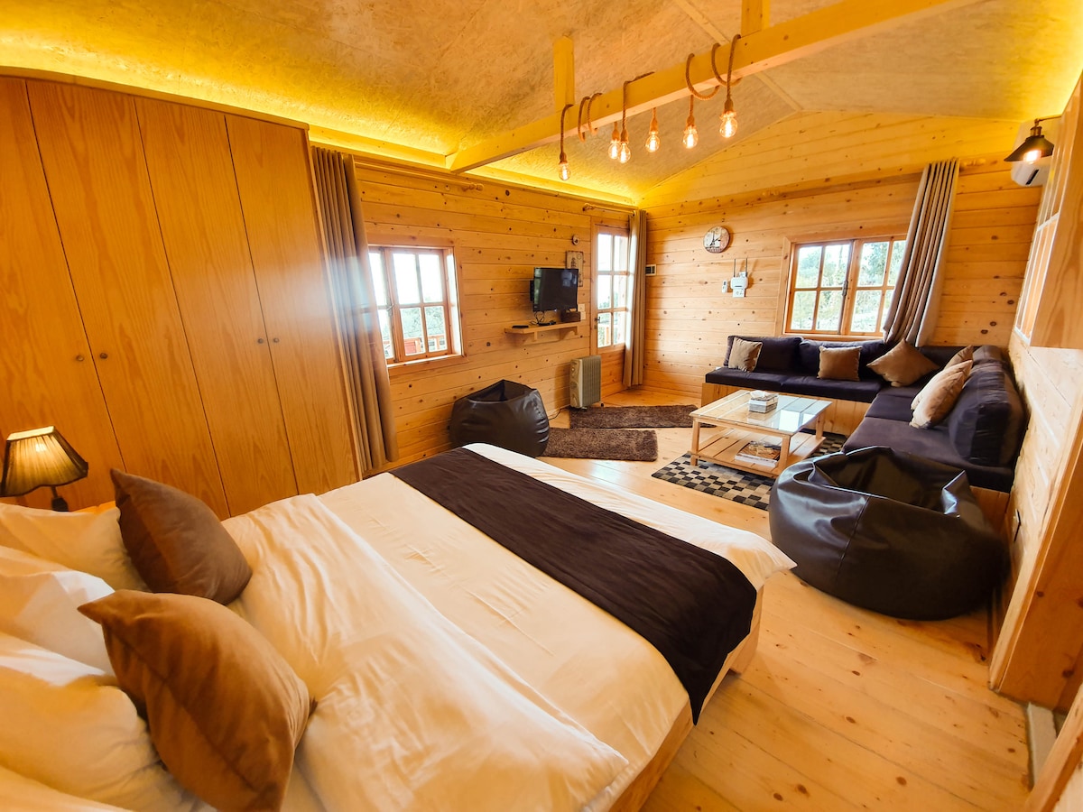 A cabin situated on a rock of feytroun village, Waya Chill Cabin offers one room with panoramic views of Sannine Mountain. Private setting with remarkable perspectives, ideal for somebody looking for a serene retreat, or a couple searching for a delightfully calm escape. A warm wooden cabin with a mini fridge and a private bathroom with dryer, a TV with cable channels, coffee, tea... A wood stove and a delicious organic breakfast ♥️