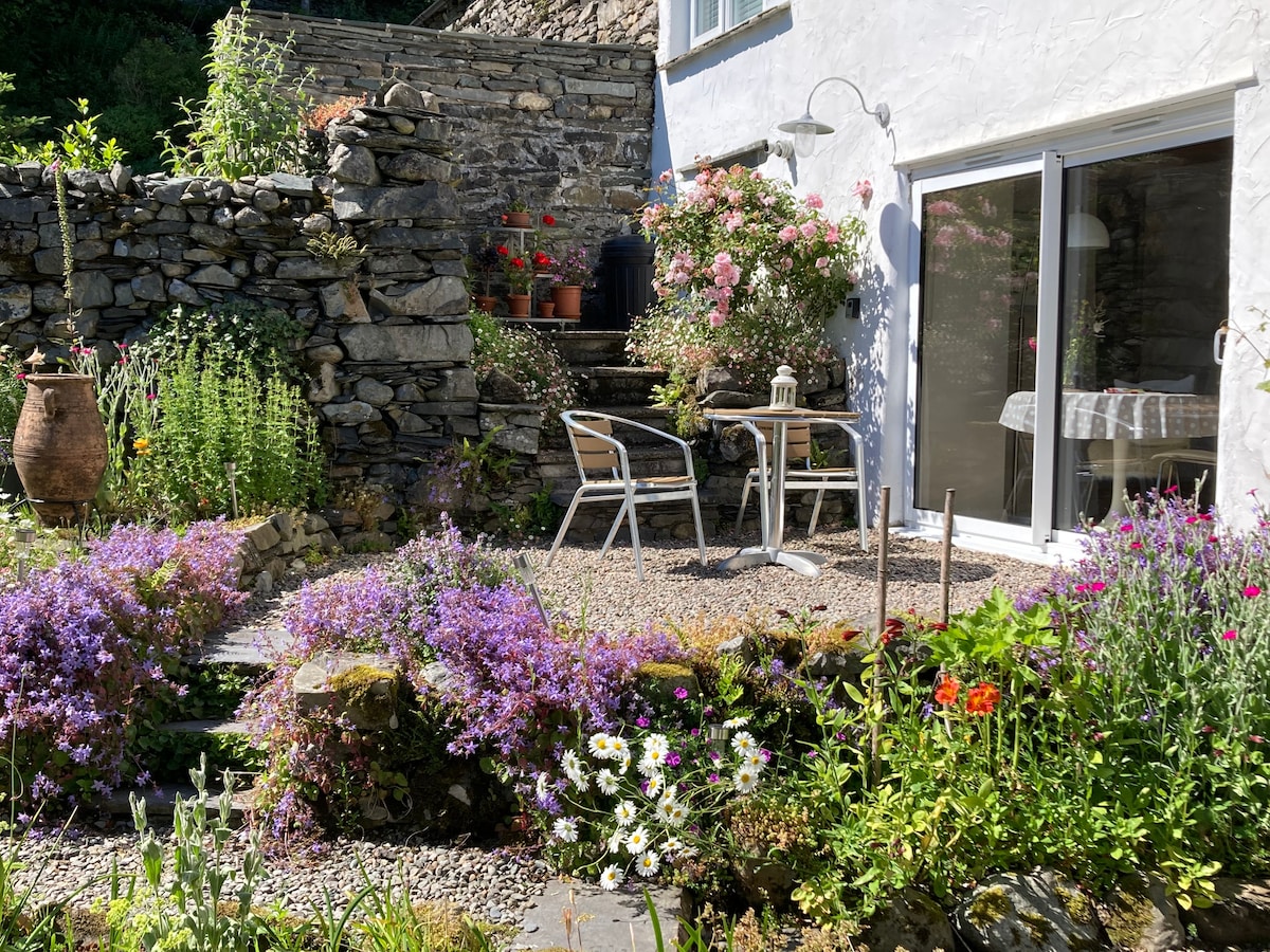 Beautiful annexe to historic grade 2-listed property. Tastefully decorated, with a stunning bedroom and bath/ shower room, commanding views across a lovely garden. Downstairs, the hall leads into a fully equipped kitchen and the living/ dining room, with patio doors that open out onto a pebbled seating area. Ideally located, with a gentle stroll down to Coniston Water and a bridle path above, leading to the fells and Coniston Old Man. Half a mile from the village and opposite the Ship Inn.