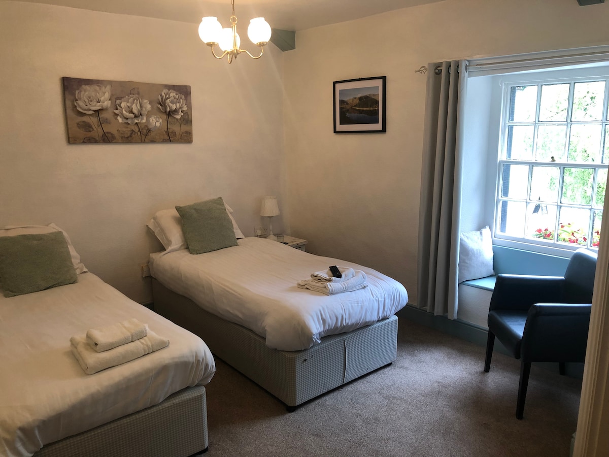Braeside Studios is a detached stone built building adjacent to our family home. We have 2 purpose built, self contained studios each with private entrance door, ensuite shower room, drying cupboard, mini breakfast kitchenette (fridge, sink, kettle, toaster) and seating area. Both our rooms are clean and contemporary and focus of comfort and practicality. The garden view room has a double bed and the riverside room has a king sized bed. You are welcome to share our garden.