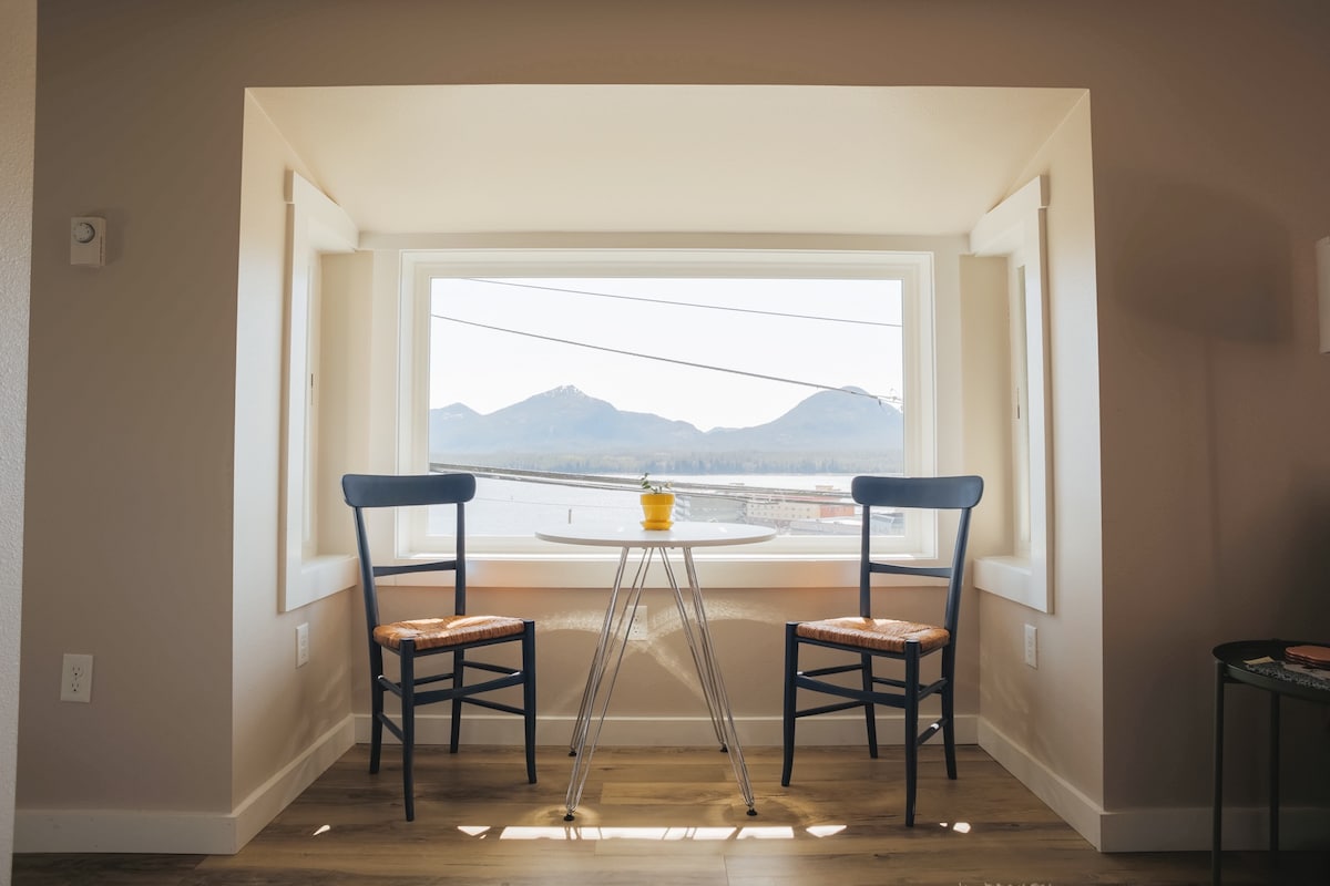 Enjoy gorgeous views of Tongass Narrows from our centrally located tree perched guest suite. With a convenient en-suite kitchenette and laundry, this is a great place for a couple to stay whether in town for a weekend of fishing or a week of site seeing. Within a short five minute walk to the downtown Ketchikan area restaurants, bars, brewery, distillery, winery and more.