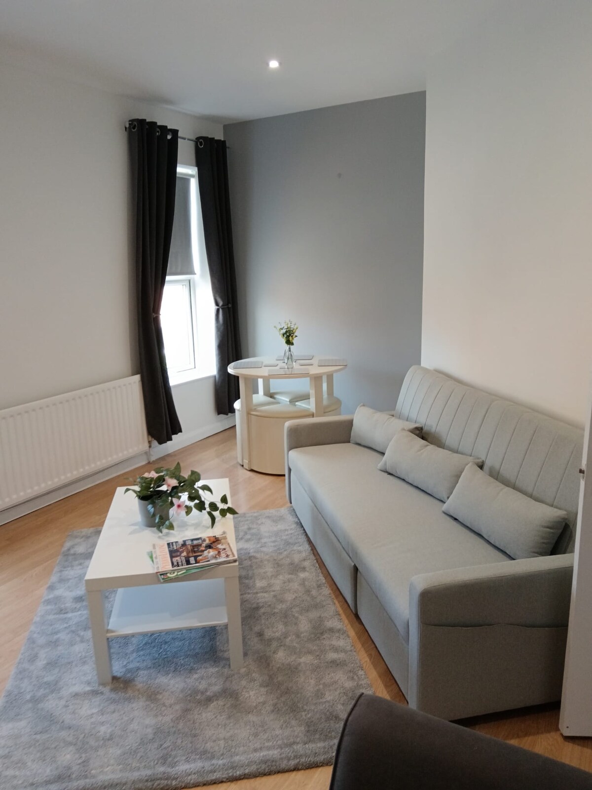 Our cosy space offers tiny living with luxury. We are confident that our small yet mighty space will meet your needs offering a comfy double bed, shower room, snuggly sofa and a fully fitted kitchen and inspire you on what can be created in a small space. Our cosy space is a renovated garage situated next to our house but you will have your own private entrance and lock safe. Parking is also available. Dogs are very welcome but please add them onto the booking as there is a charge .