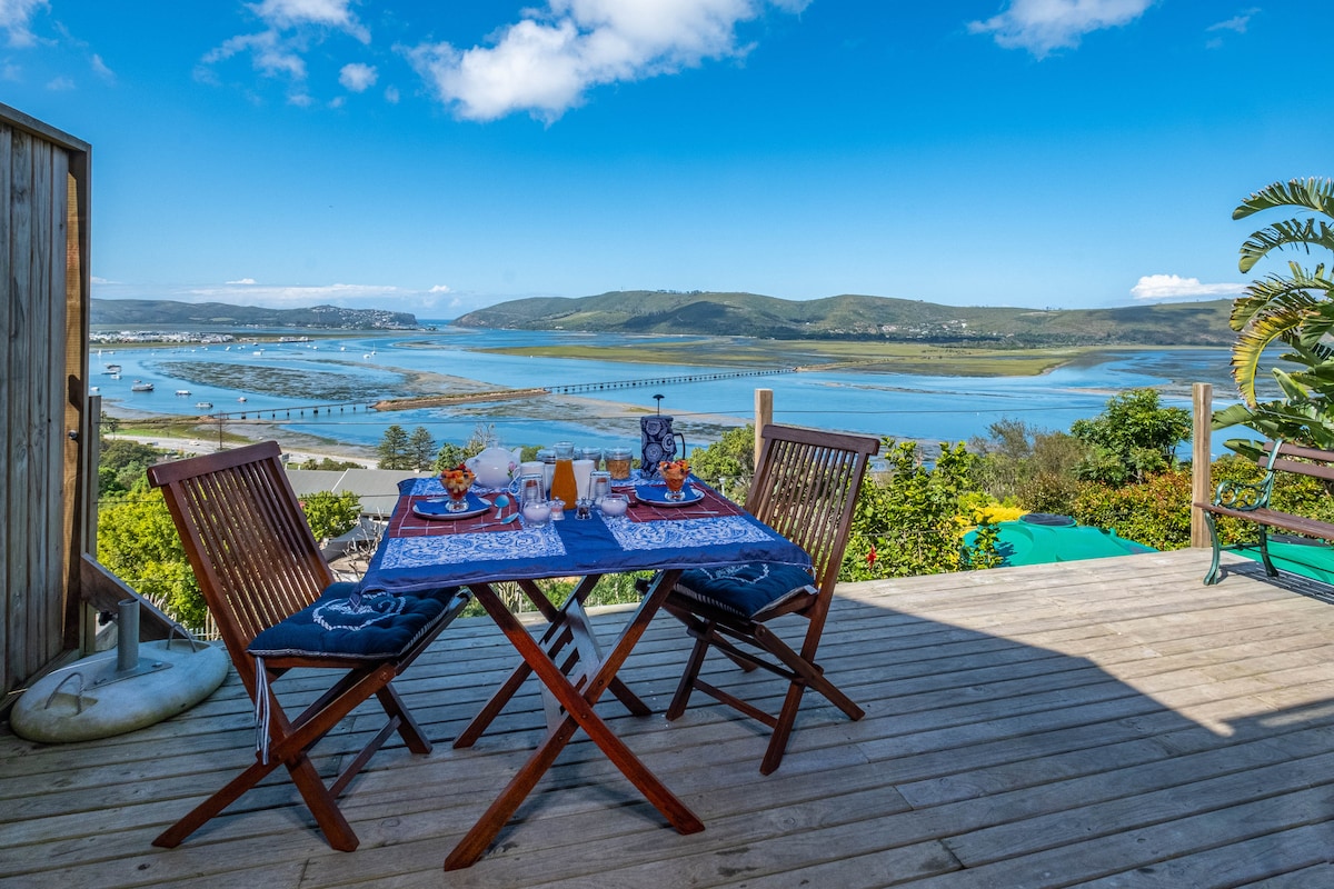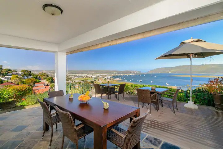 With picturesque views over the Indian Ocean & Brenton-On-Sea as well as a great location,this holiday/short term rental will take your breath away! Very spacious and beautifully furnished semi-detached house, offers 3 bedrooms with en-suite bathrooms ,full , well- equipped kitchen,spacious dining room, large lounge ,sparkling pool and a social fire- pit area. House conveniently located +/- 200m from the main beach—3-5 minute walk. SOLAR POWERED - NO LOAD SHEDDING. Cleaning may be arranged .