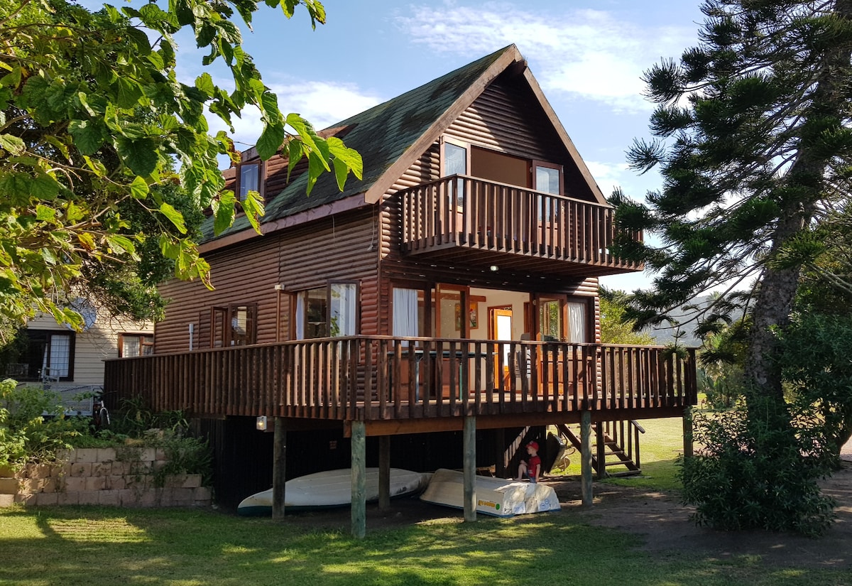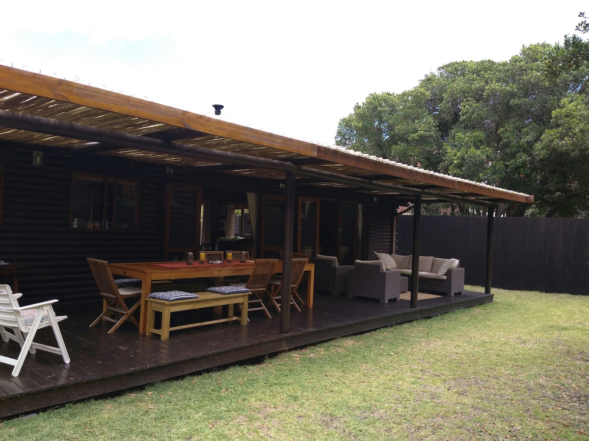 A charming and neat log beach house in the heart of South Africas Garden route . Situated in the midst of the Tzitzikamma forest and at the end of the Otter trail,this original log house is a 2 minute walk from the pristine blue flag status beach and large lagoon . The house can accommodate 9 people comfortably with 2 seating areas , as well as a dining room and outdoor covered deck for dining .An ideal holiday destination whatever time of year .The house is well equipped with all amenities .