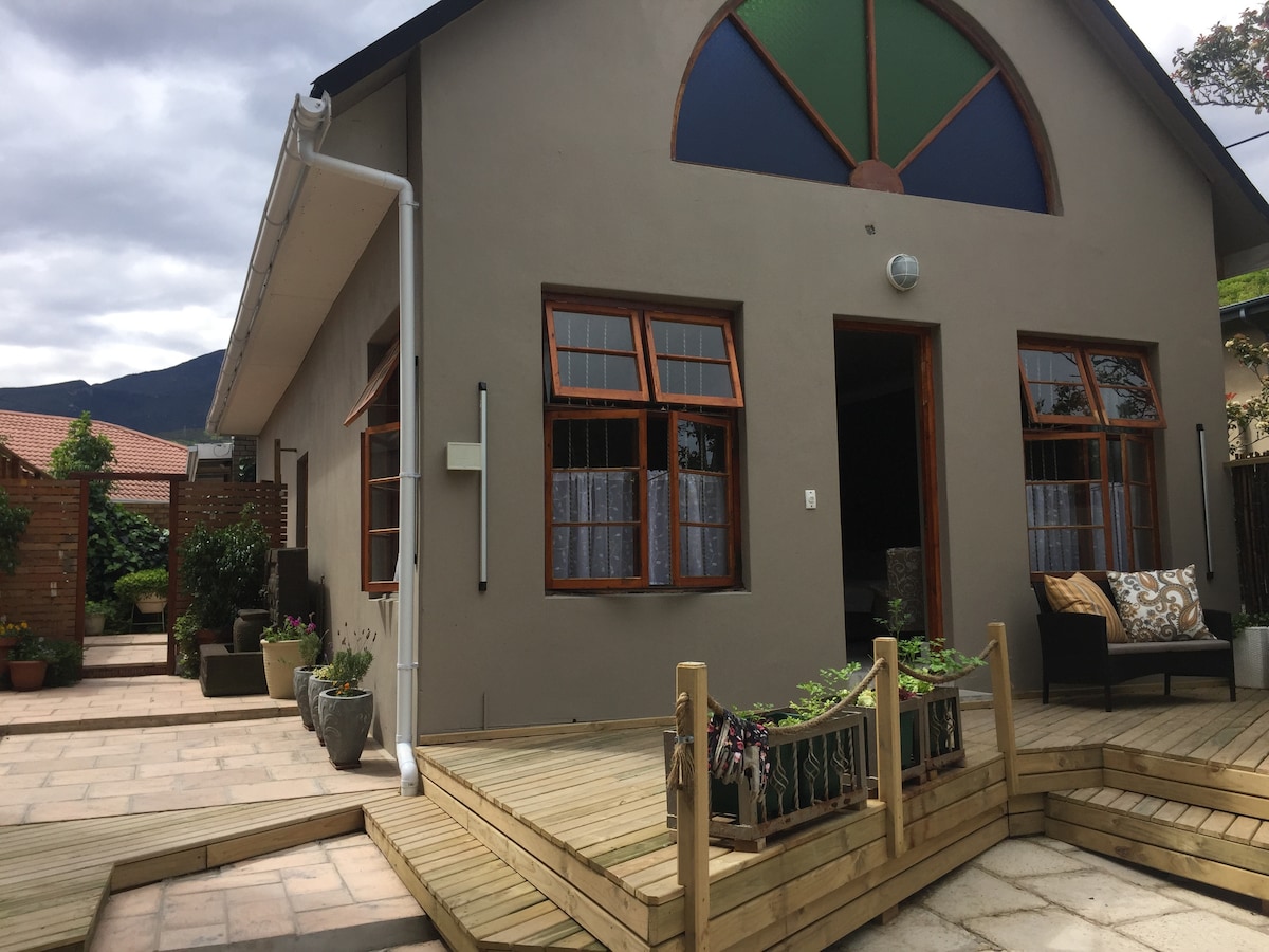 Beautiful cottage with views of the Tsitsikamma mountain range. Perfect for sunrise, sunset, stargazing and bird watching. Situated half way between Knysna and Plettenberg bay we are in a green belt, within the indigenous forest there is cycling and hiking trails. The beaches and all amenities are within a 20 min drive. This farm grows organic vegetables and is transitioning to an off the grid lifestyle.