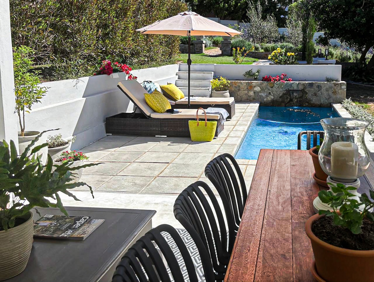 Fully equipped, private self catering cabin in Knysna, walking distance from shops and restaurants. Beautiful big spa bath and lovely view of the lagoon. Well equipped kitchen and great coffee station. NO MORE LOAD SHEDDING WITH OUR SOLAR BACKUP!! Full DSTV, Netflix, fast Fibre Internet, gas and wood grill and a small fire pit. Totally private - making it a perfect space for a romantic getaway. We’ve got two Boxer dogs that will share the garden space!! Sorry, no kids and infants allowed.