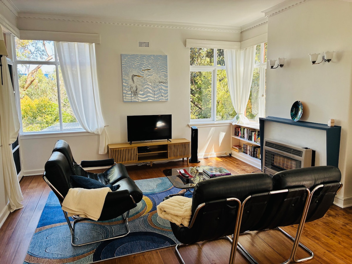 Stunning garden, peaceful,private compact Bungalow,at the rear of a 1926 California-style home. Private access. Bedroom/ensuite/kitchen/living with access outside dining area. Ideally suited to a single or couple who are in the area for work, major sporting event, or a family function. Few minutes walk to Tram/Bus into the heart of Melbourne. Close to cafes, restaurants, movie theatre, Balwyn Leisure centre and shopping village. Warm and welcoming Irish hosts who will respect your privacy..