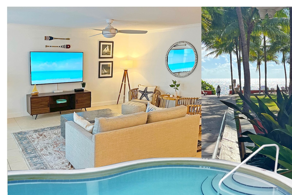 Escape the hustle and unwind in our charming one-bedroom apartment suites, right on Miami Beach at our BEACHFRONT property. Refresh and relax all week with access to two sparkling pools and a hot tub. Enjoy breathtaking sunsets from your private balcony while listening to the soothing rhythm of the ocean. Each fully furnished apartment comes with in-unit laundry, a sleek modern kitchen with stainless steel appliances, and a stylish bathroom—everything you need for a perfect stay.