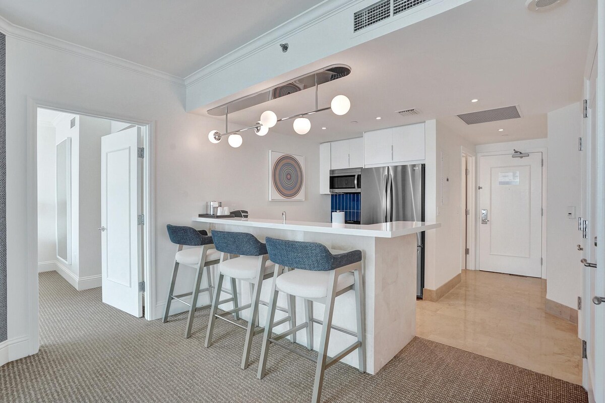1-Bedroom Suite at Fontainebleau | Curated by Benichay Brothers Elevated Stay. Enjoy a spacious 1-Bedroom Suite 2 Full Bathrooms at the iconic Fontainebleau Miami Beach, elevated by curated hospitality from Benichay Brothers. Designed for comfort and longer stays, this suite offers approximately 1000 sqft (100m²) of living space, with separate living areas, a full kitchen + 1 sofa sleeper and premium in-suite amenities perfect for families or guests seeking a more residential luxury experience.