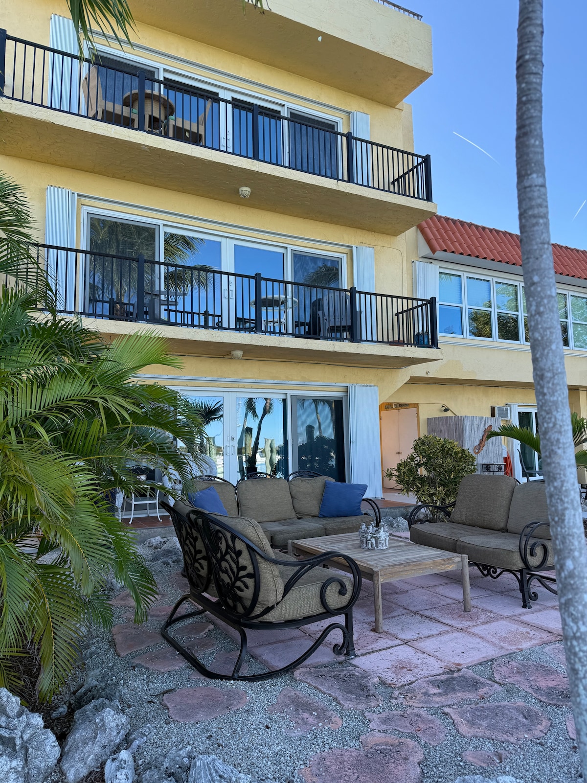 Ground floor 2 bdrm/1 bath condo in Key Colony Beach. Oceanfront complex with heated pool and private white sandy beach. New renovation with new beds, furnishings and new bathroom! Condo has kitchen stocked with everything you'll need to cook & serve complete meals. You will be a 20 second walk to our private beach and enjoy glorious sunrises every morning. Lounge chairs, patio tables, tiki huts & BBQ grills available for guest use. Sorry no boats or trailers allowed in our parking lot