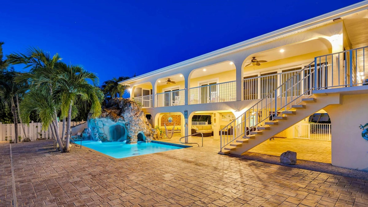 Waterfront Paradise w/ Pool, Grotto Slide & Direct Ocean Access! Slide into vacation mode at this stunningly renovated waterfront home, perfectly located with direct access to both the Atlantic Ocean and Gulf of Mexico via Vaca Cut. Whether you're boating, swimming, or simply soaking up the Florida sun, this home is the ultimate getaway for families and groups. Outdoor Fun for EveryoneYour private, fenced backyard is packed with fun!