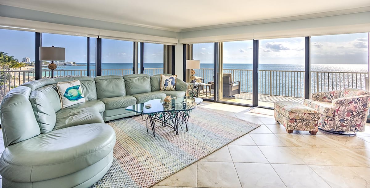 角落公寓,设有环绕式海滨阳台