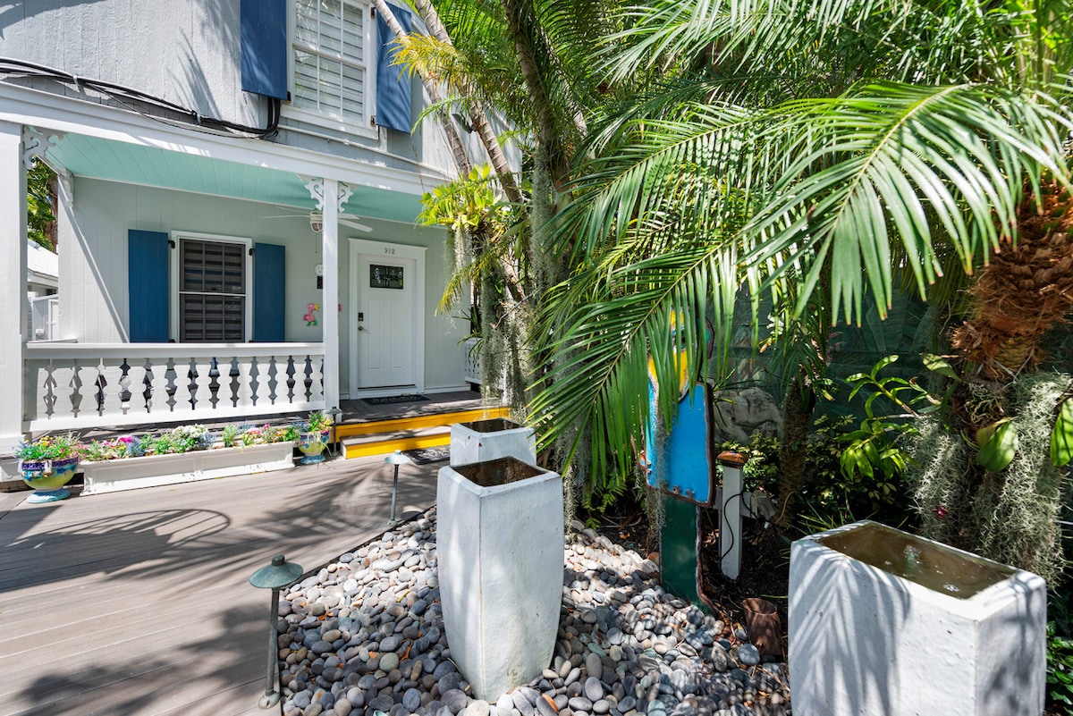 Historic Harrison's Hideaway is in an 1880's Cigar Maker's cottage renovated in 2010. It features a K size Pottery Barn memory foam bed, custom made full sleeper sofa, renovated kitchen with granite counter tops, 2 burner stove, under counter fridge/freezer, dishwasher, microwave, air fryer/oven tumbled marble 2 person shower, private front deck with seating for 4, 2 person Solana spa. Perfect for a couple or a family with children. Freshly painted a Caribbean blue with plantation shutters.