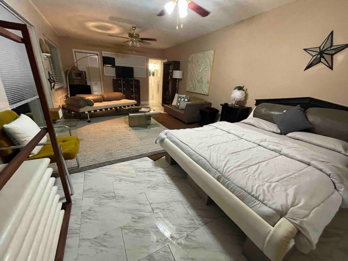 Spacious private studio bungalow in a central location walking distance to many tourist locations, restaurants, markets, Calle ocho tourist center, multi billion dollar Brickell City Center with many attractions and Viscaya museum . Refrigerator and microwave, icemaker, flat screen television. And induction stove upon request