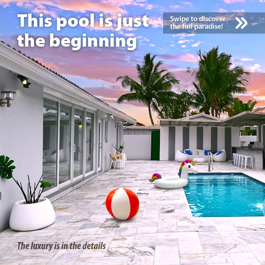 Bring your family to the luxurious 3BR 2Bath Villa Paradise in the tranquil and friendly neighborhood in southern Miami, FL. Visit the exciting attractions, natural landmarks, restaurants, shops, and much more, and then retreat to the lavish oasis that will leave you in awe with its stylish design, private backyard, and rich amenity list. ✔ 3 Comfortable BRs ✔ Open Design Living ✔ Fully Equipped Kitchen ✔ Heated Pool ✔ Game Room ✔ Smart TVs ✔ Smart House ✔ High-Speed Wi-Fi ✔ Free Parking