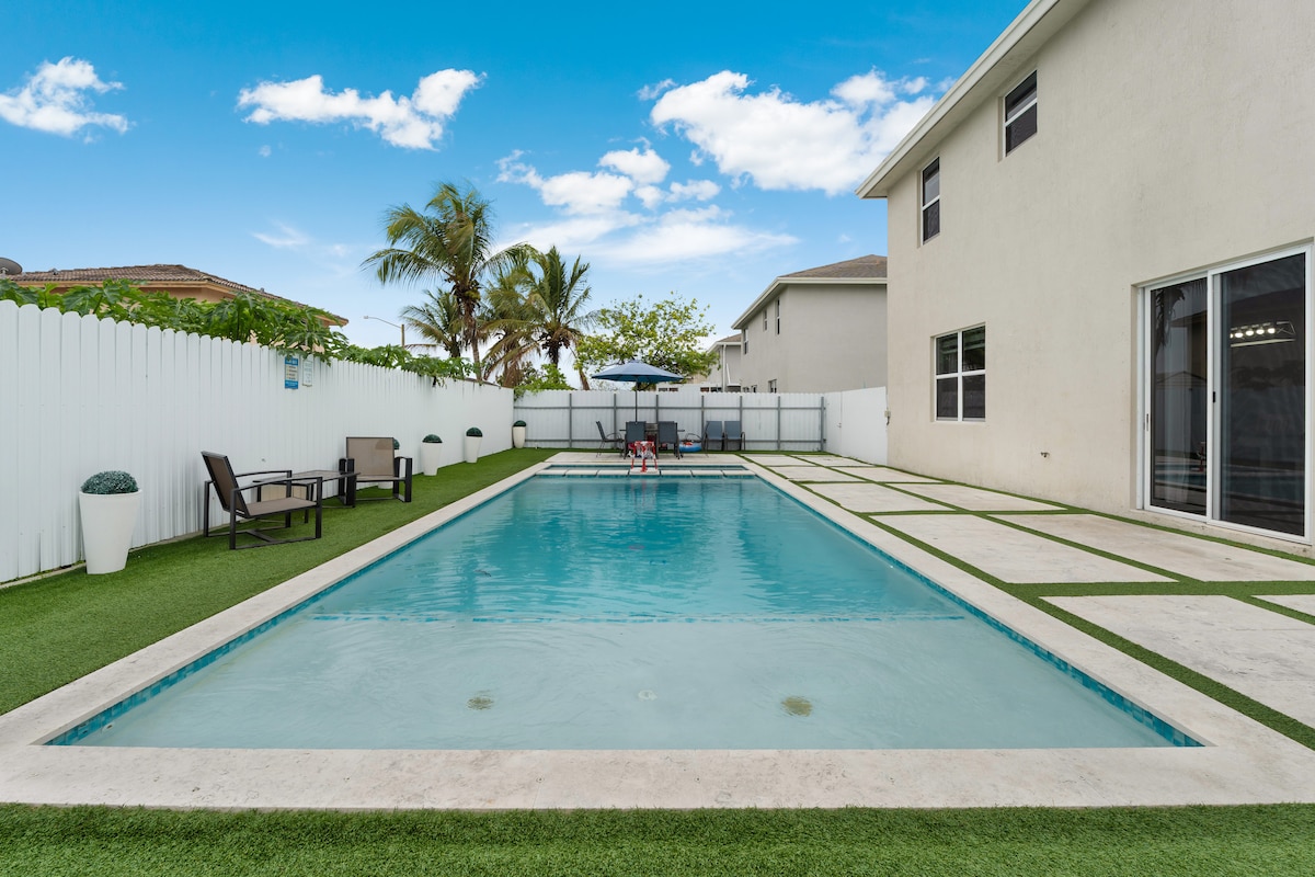 迈阿密放松|恒温泳池|家庭度假。
