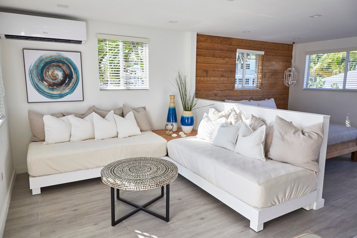 1卧加大双人床公寓。步行到海滩