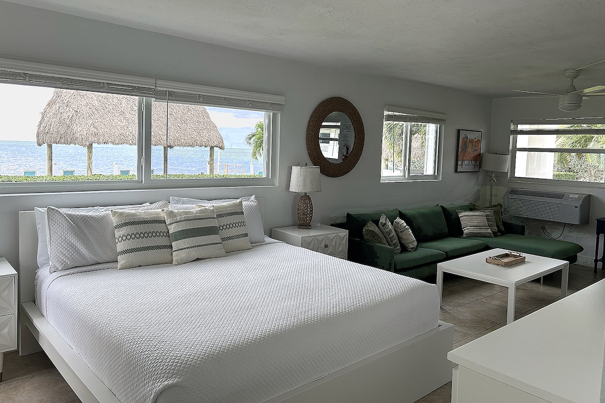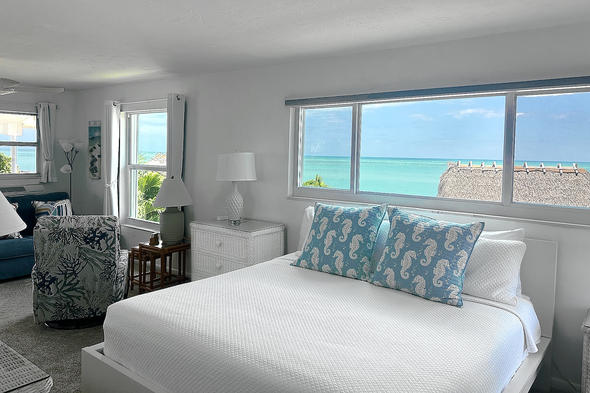 Experience a wonderful ocean view from our beachfront condo in Key Colony Beach. Newly renovated studio condo in Key Colony Beach, Florida Keys. Unit #10 offers one king bed, a fully equipped kitchen with full-size appliances and essentials, reliable WiFi, and a SmartTV for a comfortable stay. Enjoy the heated pool and private sandy beach just steps away. Sunset Park is next door-perfect for catching a beautiful Florida Keys sunset.