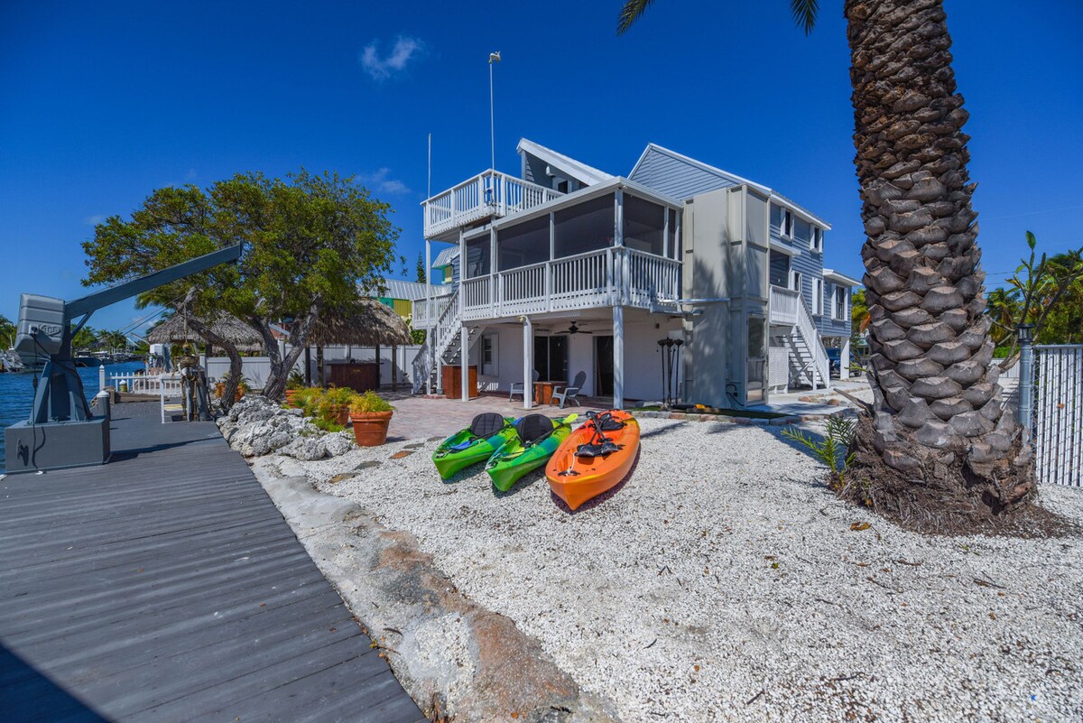 Your WATERFRONT Keys getaway!! Updated appliances & fixtures, this 2BR/2BA elevated property won’t disappoint! Fully stocked kitchen/bathrooms. Never ending activities for your group at the Venture Out Resort- a gated community with oversized pool, hot tub, pickle ball/tennis/basketball courts, fishing, lobstering, biking, kayaking, boating! Launch your boat from the private ramp and tie it up on our 35’ seawall! Situated between Key West & Marathon, this property is THE PLACE!