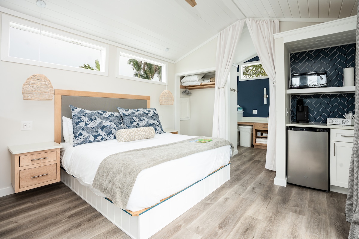 Pet-friendly glamping in The Keys. Camp in comfort on your next Key West escape in an air-conditioned bungalow. Close to our amenities. Featuring a living room (with sleeper sofa), bathroom with shower, and a king-size bed, this vacation rental getaway sleeps 4. Our bungalows also boast patio table seating for four, Smart streaming TV, Wi-Fi, microwave, mini fridge, Keurig coffee maker, blow dryers, charcoal grill, and steamers.