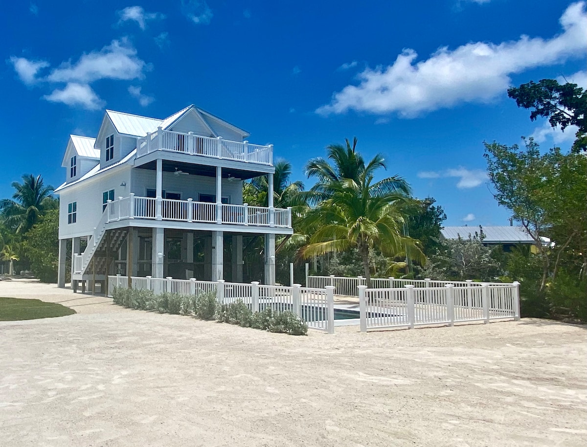 This 5 bedroom 3 bath house with pool on Ocean front property on Highway 1.. This lovely home has its own huge pool area with full lounge chairs all the way around pool area, the pool is heated. Grill, Jacuzzi. Full WiFi. TVs in every bedroom! Travel down our private dock way to the beautiful Cudjoe Bay, hop one of the many kayaks and take a healthy paddle with your friends/family or just enjoy the breathtaking ocean view while you sit on the porch.