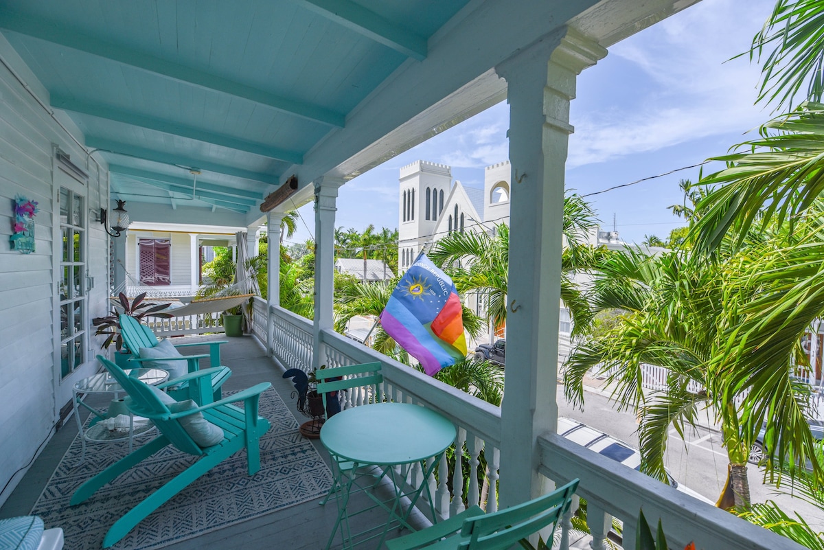 This unit is located in the historic "Cigar House" of the Island City House Hotel. Unit 12 is on the 3rd floor and is one of the most requested units in the entire hotel. Your private balcony overlooks the pool. Only 3 blocks from Duval street so close everything, yet quiet enough for a good nights sleep. You will have your own private entrance and use of all the hotel amenities. The space is a private 1BR with a kitchen and NEW sleeper sofa (12/23). In Old Town, walk to everything.