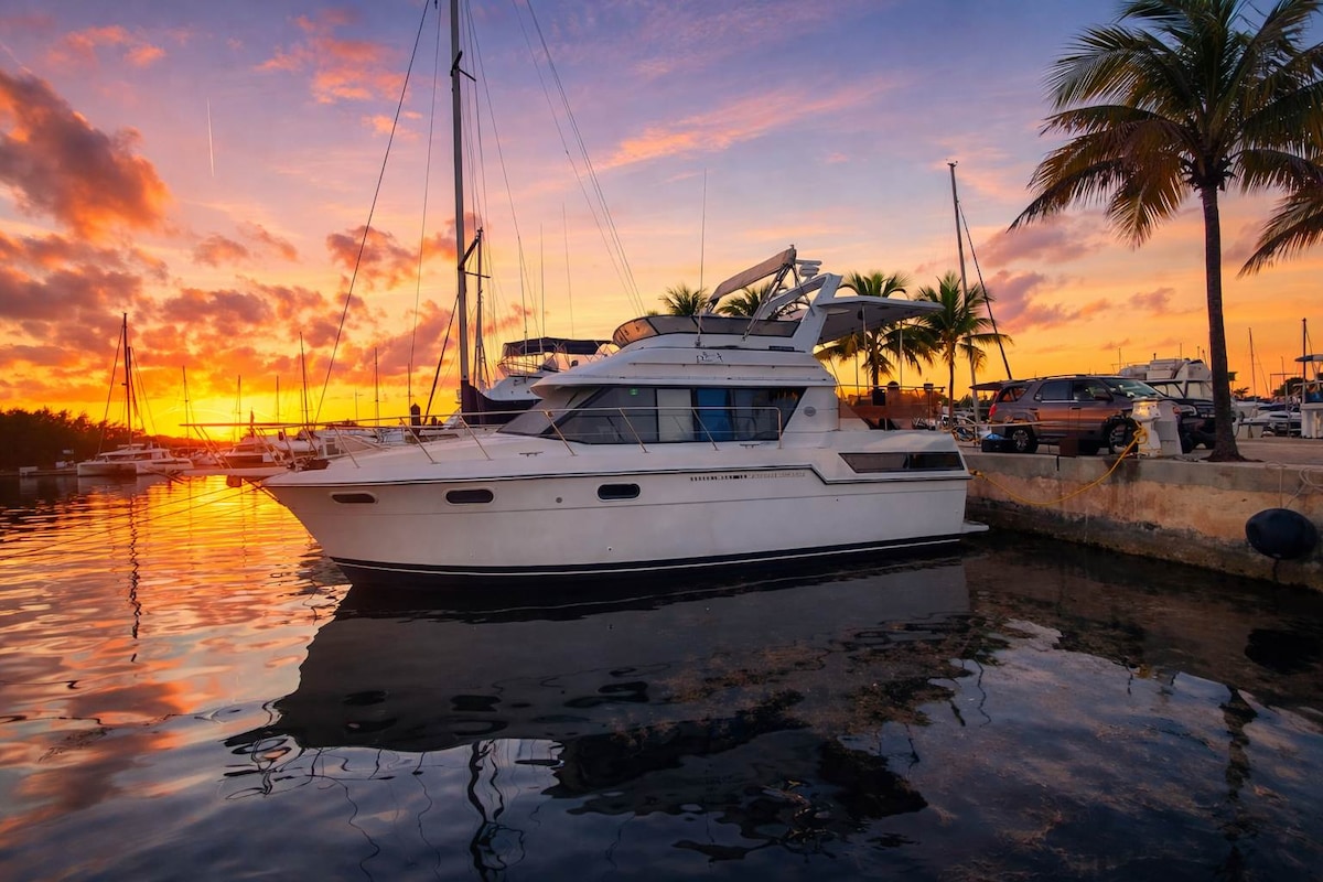 Read our reviews and relax with last minute weather cancellation! 🌞 Shower, toilet and power to recharge phones, full cellular. Enjoy a peaceful night or two on the water! Free parking and one free round trip transport to/from Roxie per night stay! Roxie is anchored in ~3ft lagoon. We live on a boat a half-mile away if you need anything at all! Roxie has a Keurig, coffee pods, bread, peanut butter-jelly, and bottled waters. No cooking but you may bring to-go food, beer/booze/wine. 🛥️🌴🎣