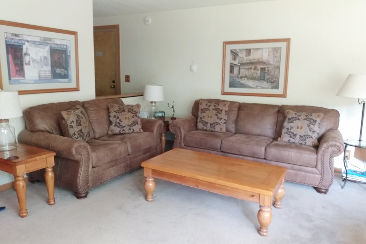 Here's your perfect spot to relax after a day hiking, biking, or otherwise exploring the mountain! This is a 1 bed, 1 bath unit with a private ground floor entrance. It is less than a 5-minute walk to Peak 9 base in downtown Breck. Kick up your feet up in front of a gas fireplace, or cook dinner in the full kitchen, before heading for a soak in the hot tubs or heading out to town.
