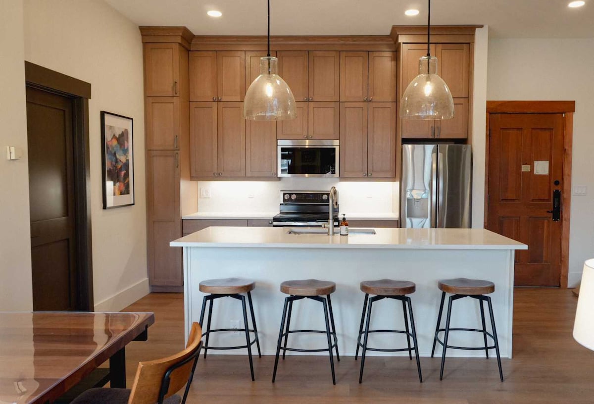 Newly renovated Keystone condo with vaulted ceilings, modern mountain décor, and a wood-burning fireplace. Enjoy a fully equipped kitchen, luxe living area, and serene bedroom retreat, all just minutes from the lifts, trails, and village dining. Remote workers will appreciate the fast WiFi for work & relaxation. With amenities like an indoor pool, hot tubs, dry sauna, and a private ski locker, this is the ideal spot for couples & young famlies. Rental Permit BCA-99823