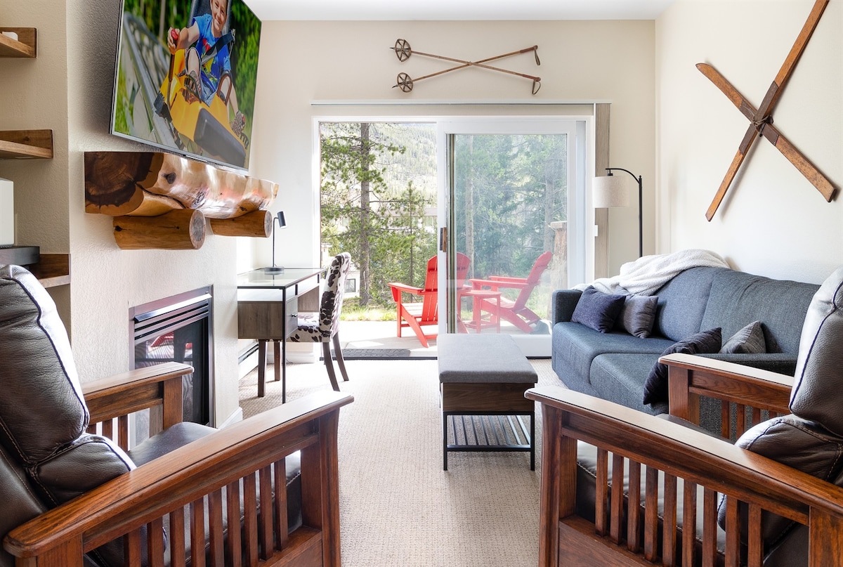 RENOVATED studio SKI IN/OUT in KEYSTONE!! NEW PERU SKI LIFT & SKI SCHOOL literally steps from the Keystone Mountain Haus Base. 2 HOT TUBS, FIRE PIT and GRILL to enjoy . 1 FREE UNDERGROUND PARKING spot (PRIVATE SKI LOCKER. RESTAURANTS/BARS in walking distance. GREAT LOCATION! Great for families & kids and shared CLUBHOUSE. GAMES too!! Summer time, enjoy the CREEK next to the building to relax, fly-fish, & mountains and biking! Mountain & River Views! Looking for longer stay? Message!