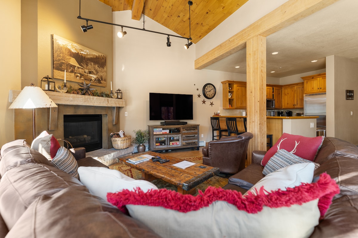 This 2-bedroom, 2-bathroom townhome sleeps 7 with a king bed, bunk bed, and queen sleeper sofa. It features beautiful slope views. Vaulted ceilings and large windows allow lots of natural light in the living area and primary bedroom. Other features include a private laundry and private garage. You're a very short walk from nearby shops and restaurants. Plus, you're also a short walk from the gondola at River Run and the Mountain House lifts.