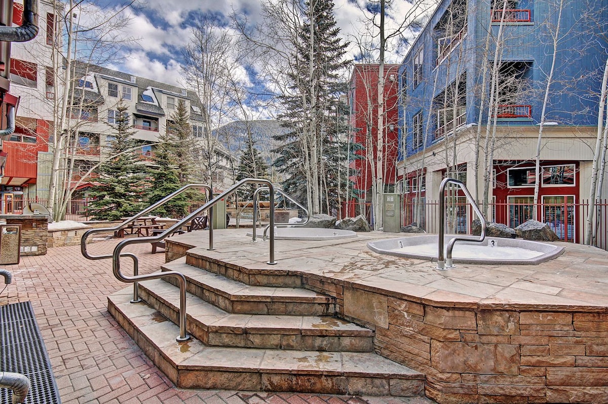 RENOVATED studio SKI IN/OUT in KEYSTONE!! Next to PERU SKI LIFT & SKI SCHOOL literally steps from the Keystone Mountain Haus Base. 2 HOT TUBS, FIRE PIT and GRILL to enjoy . 1 FREE UNDERGROUND PARKING spot (PRIVATE SKI LOCKER. RESTAURANTS/BARS in walking distance. GREAT LOCATION! Great for families & kids and shared CLUBHOUSE. GAMES too! Summer time, enjoy the CREEK next to the building to relax, fly-fish, & mountains and biking! Mountain & River Views! Looking for longer stay? Message