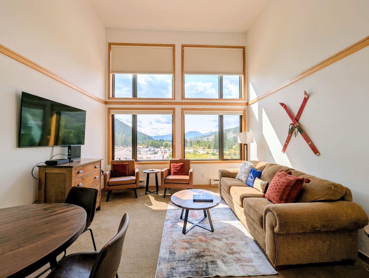 Welcome to our light and bright 1 bedroom condo in the heart of River Run Village(Keystone Mountain)! Skip the shuttles to the lifts as this condo is a 3 minute walk to the gondola! This condo sleeps four and features a private one bedroom with king bed as well as an updated unit with granite countertops. Enjoy your favorite beverage while soaking up the sun and spectacular views of the slopes while either inside heated by the fire, or outside on your own private balcony.