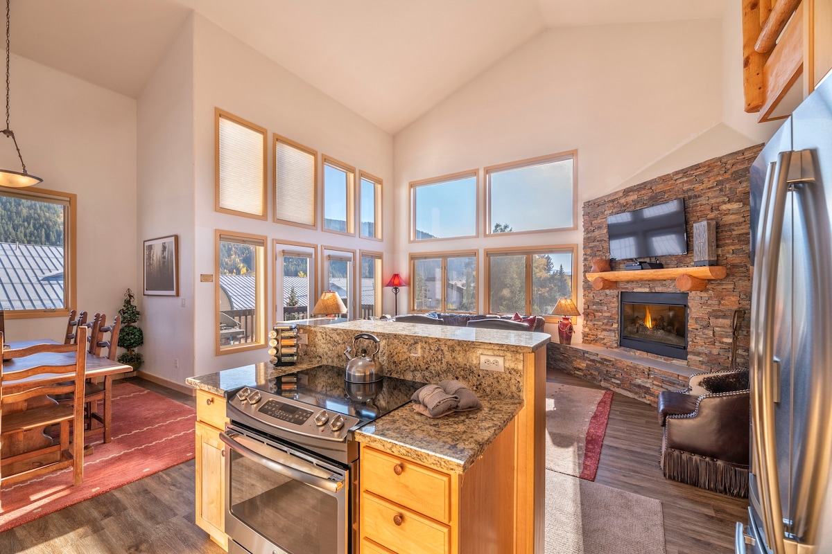 This spacious 1-bedroom space with kitchenette, fireplace, and laundry room is located in a quiet neighborhood 2 miles from Keystone Resort. Vaulted windows and large deck offer views of the mountains and surrounding forest. Property sits adjacent to a public trail and the Keystone River golf course, offering guests full privacy and easy access to hiking, biking, Nordic skiing, and golfing. Shared access to main house offers grill, outdoor griddle, and full kitchen. LICENSE NUMBER: BCA-72323