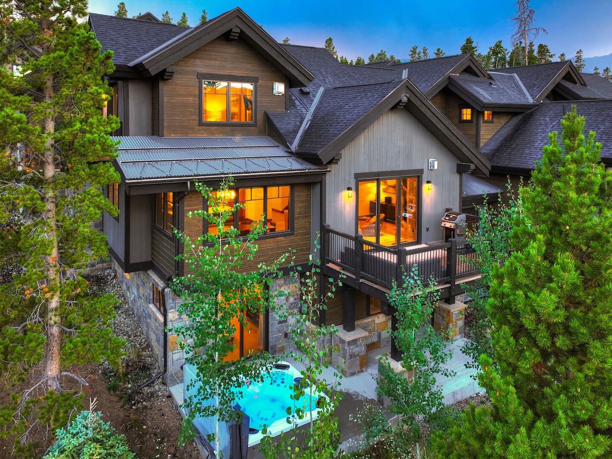 **NEW PRIVATE CUSTOM DESIGNED SAUNA INSTALLED** Modern, rustic, green built Nordic ski lodge-style home with 5000 square feet of open living space. 20ft tall vaulted ceilings, gorgeous exposed wooden beams throughout, sustainable wood flooring with radiant heating, tile bathrooms, warm gas fireplaces, and a relaxing hot tub. Just a short drive (20 minutes) to the center of town, the gondola, and the slopes of Breckenridge Ski Resort. World-class hiking and wildlife right out the door.