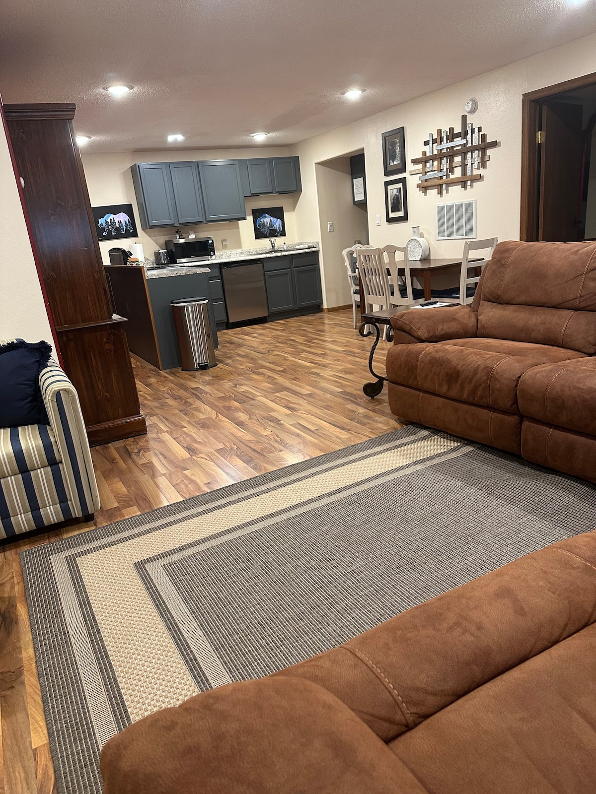 Two Large Furnished Bedrooms, new Queen Beds Pool Table and Darts Large living room with new sofa sleeper Newly remodeled bathroom 65'' UHD Smart TV, Dish DVR, Bluray Pool and Rec facilities, seasonal WIFI Highspeed Internet Outdoor patio area with seating Gas grill Pool table and darts Full size fridge/freezer Convection oven Induction cooktop Microwave Keurig coffee and breakfast snacks Washer and dryer Close to Rapid City shopping and dining Nature and wild life Amazing stars out at night!