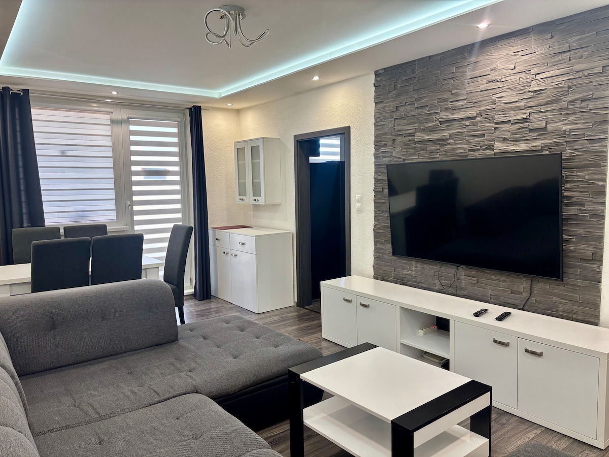 Modern 2-room apartment in the heart of Poprad, 54 m². Features a spacious living room with a pull-out sofa and flat TV with Netflix, fully equipped kitchen, cozy bedroom with generous storage and balcony access, modern bathroom with bathtub. Includes high-speed WiFi and free courtyard parking. Located centrally, with shops, restaurants, cafes just steps away. The aquapark is 750m away, and the train station, offering access to the High Tatras, is a 10-minute walk. Ideal for business or leisure.