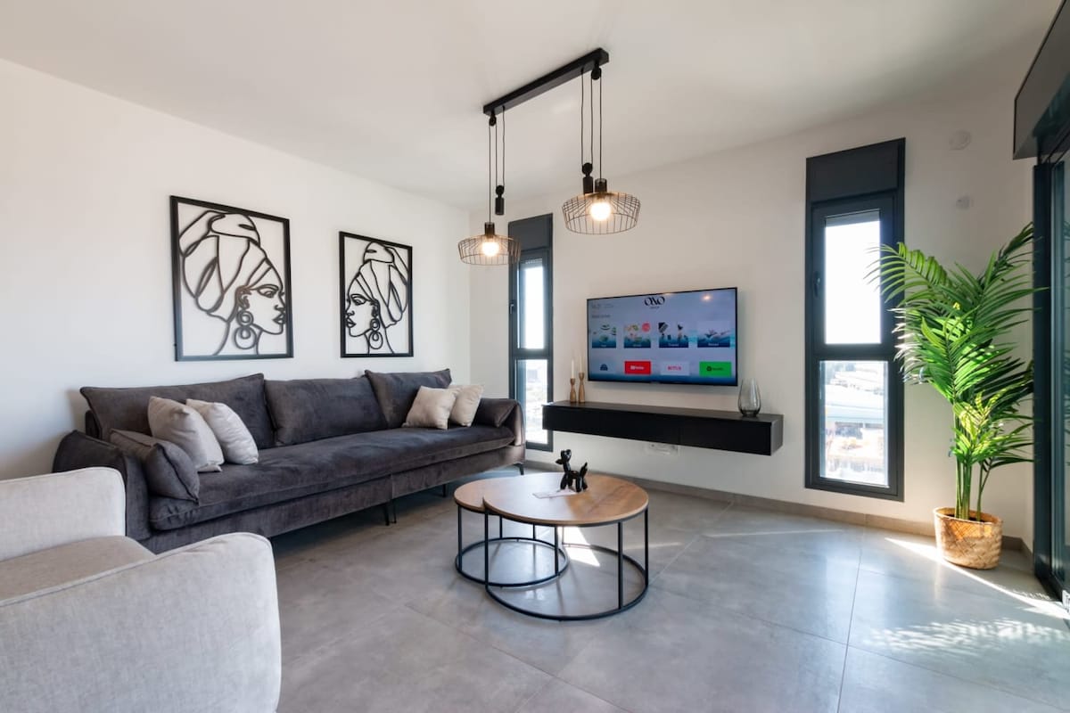 Welcome to a prestigious experience unlike anything you’ve had before. Designed by an artist, Luxury Point is not just a place to stay — it’s a feeling. Every detail was carefully selected to create comfort, beauty, and top quality. Located in a boutique building with only four residents, offering privacy and tranquility in a quiet neighborhood. Free street parking (blue & white). אין ממ״ד יש מקלט בבניין הצמוד 📍 Perfect location: Derech HaShalom, only 3 minutes from Tel Aviv.