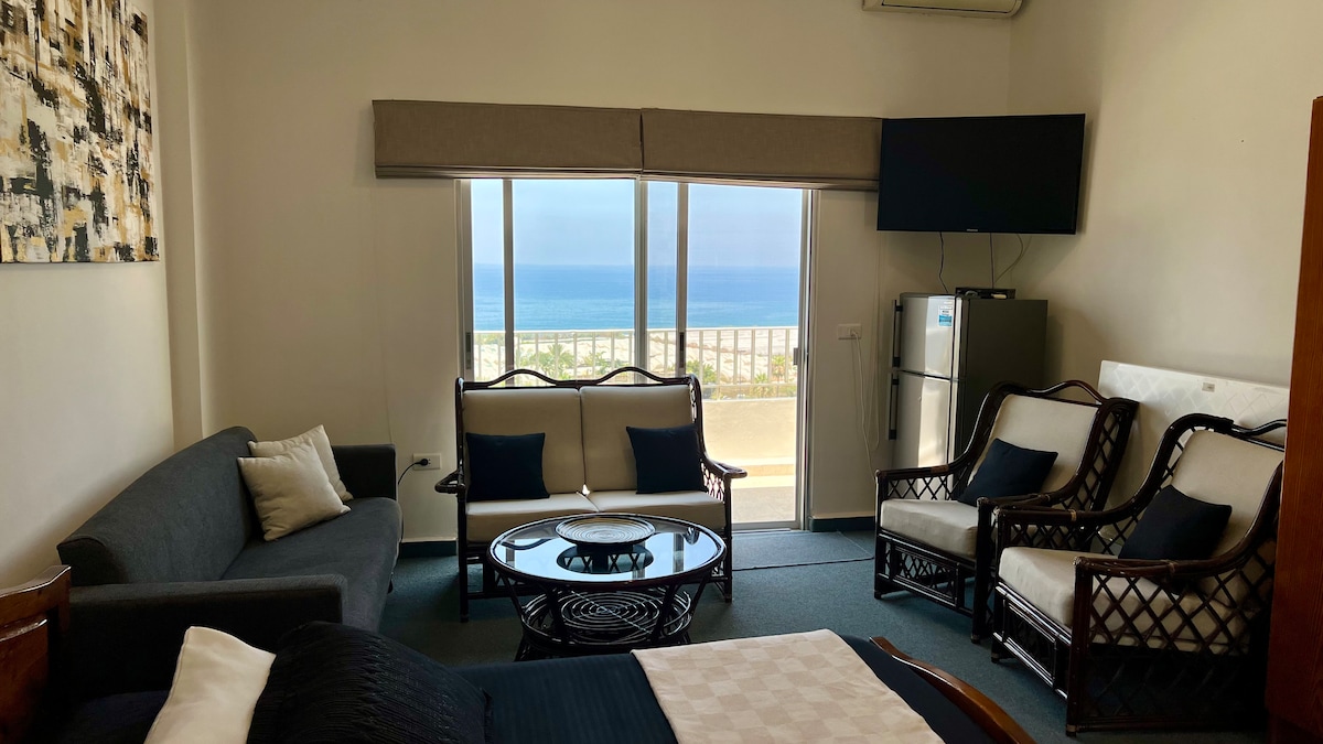 This peaceful and centrally-located apartment is also family friendly and very spacious. The 2 king sized bedrooms offer extreme comfort. Electricity is available 24/7. Fast internet access is also available. Enjoy the hot tub located on our roomy terrace overlooking a wonderful and serene beach view (the beach is not private a restaurant has now opened on the ground floor). Vilavita’s netflix account is also available for you to enjoy your favorite movie/show during your stay!
