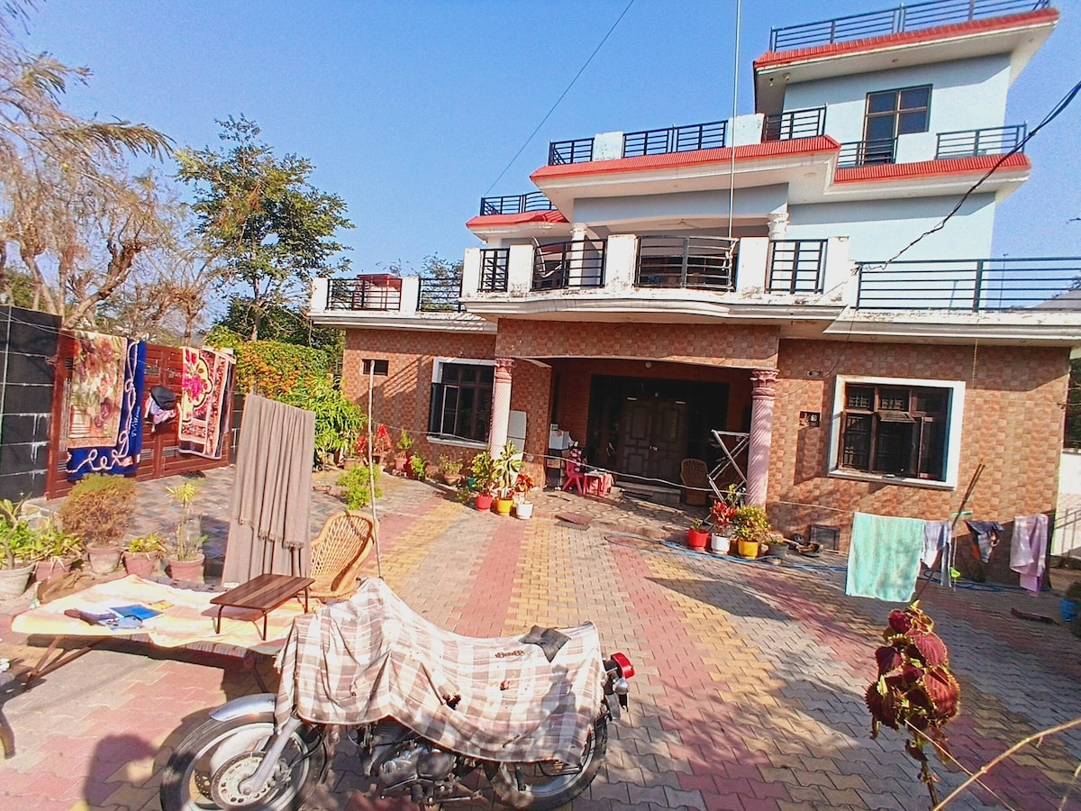 Peaceful 2-bedroom retreat in a secluded area, perfect for relaxation or spiritual exploration. The home features a front lawn, parking for 2-3 cars, two living rooms, cozy bedrooms with AC, an attached toilet, and a private balcony. A kitchen that ensures convenience. Just 3 mins walk to Radha Soami Satsang Beas Koharchhan , 7 km from Amb Andaura railway station, 15 km to Chintpurni Temple, and 37 km to Jwalaji Temple. Enjoy a serene environment close to key attractions.