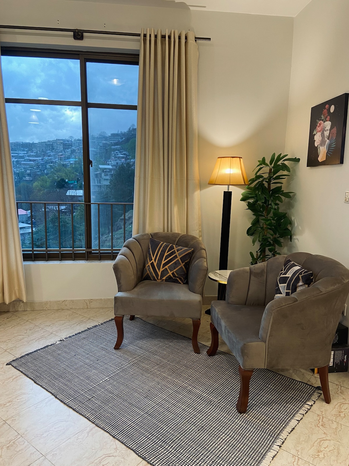 Luxe Loft Stylish 3-Bed Apartment in Murree Enjoy a peaceful stay in this uniquely designed 3-bed apartment near MIT, Lower Jhika Gali Road. Features 2 king beds, 2 single beds, open-plan kitchen & lounge, smart TV, large terrace with mountain views, 24/7 security, UPS backup, and free parking. Cook & driver accommodation available at extra charge. Couples & families only. 5 minutes to Jhika Gali Bazaar, 10 minutes to Mall Road.