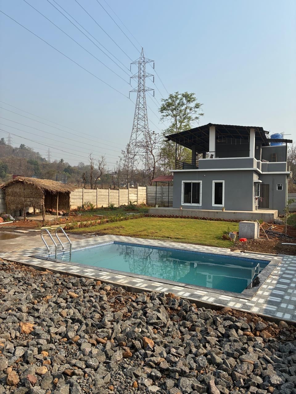 'Villa Elsewhere' is a luxurious, beautiful, private pool villa, just 60-90 mins drive from Mumbai. Surrounded by lush green views of fields, hills, and sounds of nature. The Villa has 3 AC en-suite bedrooms, a large AC living room that opens into a private pool and large deck with a Bar. The kitchen is fully equipped where a chef can make delicious meals (*extra charge). It is pet friendly (*extra fee). BOOK to relax in a calm peaceful vibe, for a get together, or to host the best part ever!