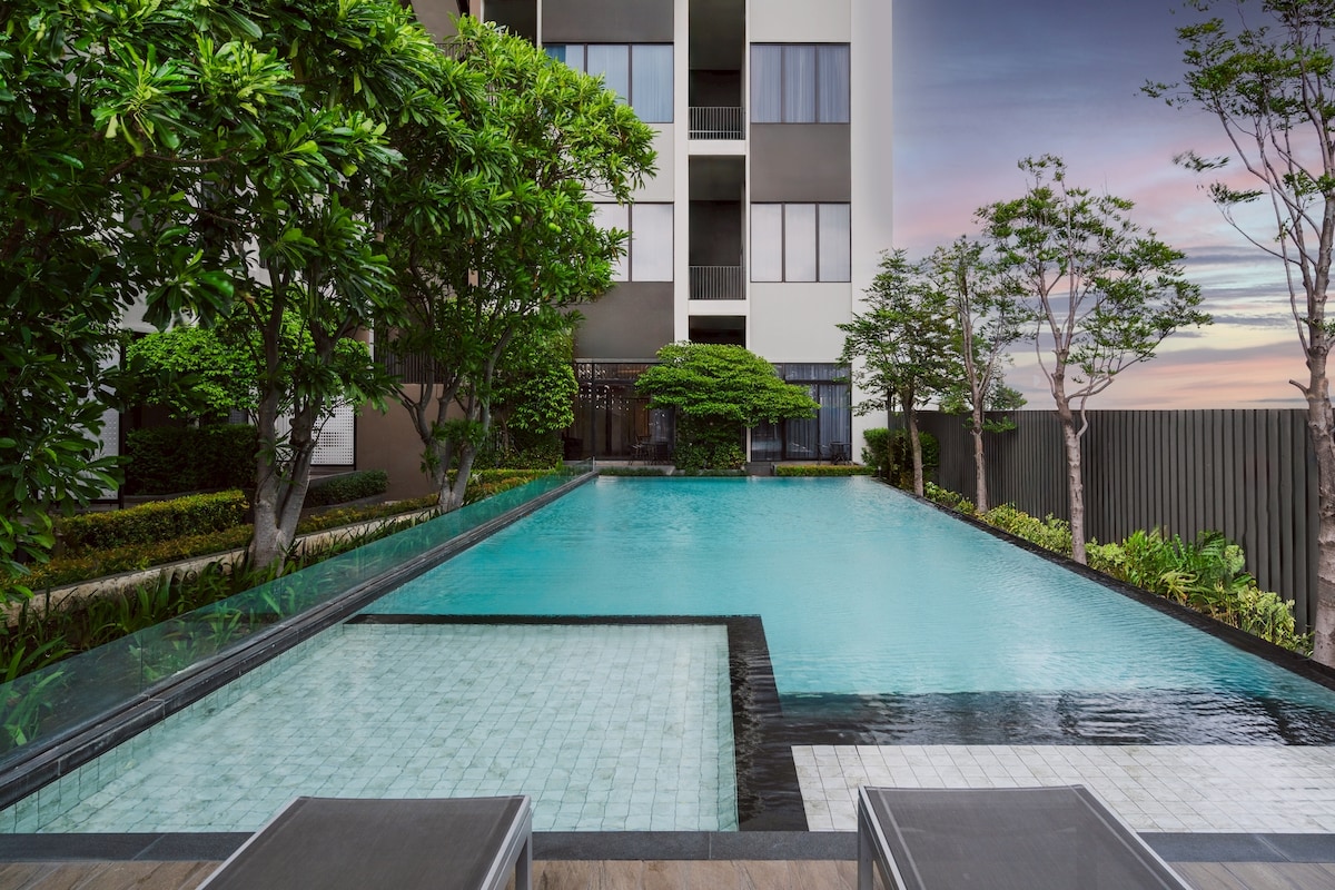 Rama9复式两卧LOFT套房带阳台12/住5人/屋顶泳池/近RCA/近火车夜市/近tonglor