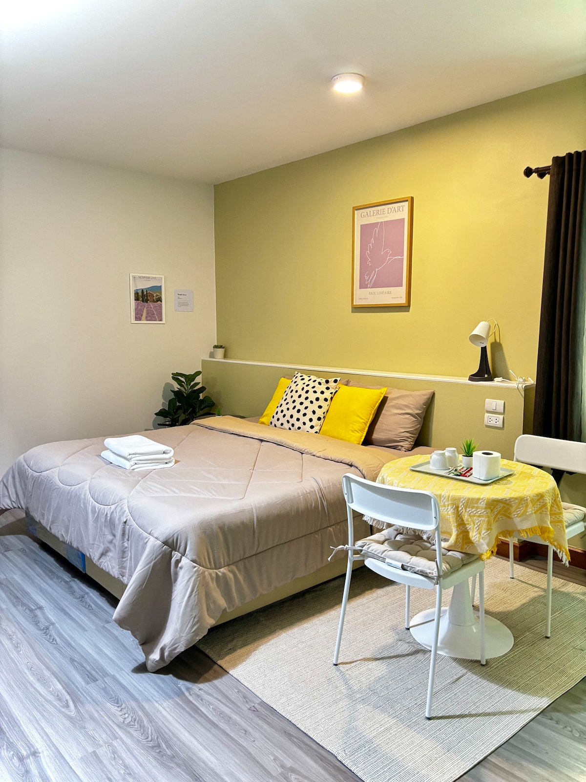 欢迎您选择并且入住我的公寓,希望您有一个很棒的泰国之旅。 房子位于RAMA9,2024年交付的LOFT公寓。房间面积70平左右,包括两间卧室、一间客厅和餐厅、一间厨房和两间卫生间,轻松容纳5名成年人。(‼️tps: 在订单入住人数为1-4人时,默认每个卧室里一张床,如果您需要增加客厅铺沙发床,请在预订时将人数填写为5人,并在预订后联系我们特别告知,我们会在您入住前安排工作人员铺好沙发床‼️) 订单价格包括使用整套房源,以及健身中心,游泳池以及共享办公空间的费用。