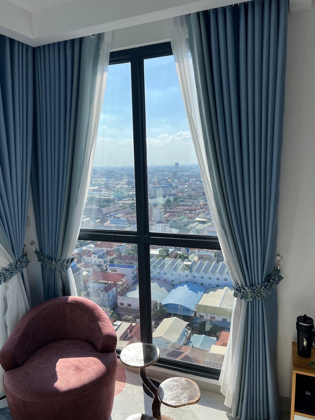Relax with the whole family at this peaceful retreat, offering stunning high-floor (23rd floor) city views. Located in a safe neighborhood, just 5 minutes from the mall, this brand-new apartment is perfect for a tranquil and convenient stay. 15-20minutes to royal palace, pub street, 20minutes to the Phnom Penh airport.