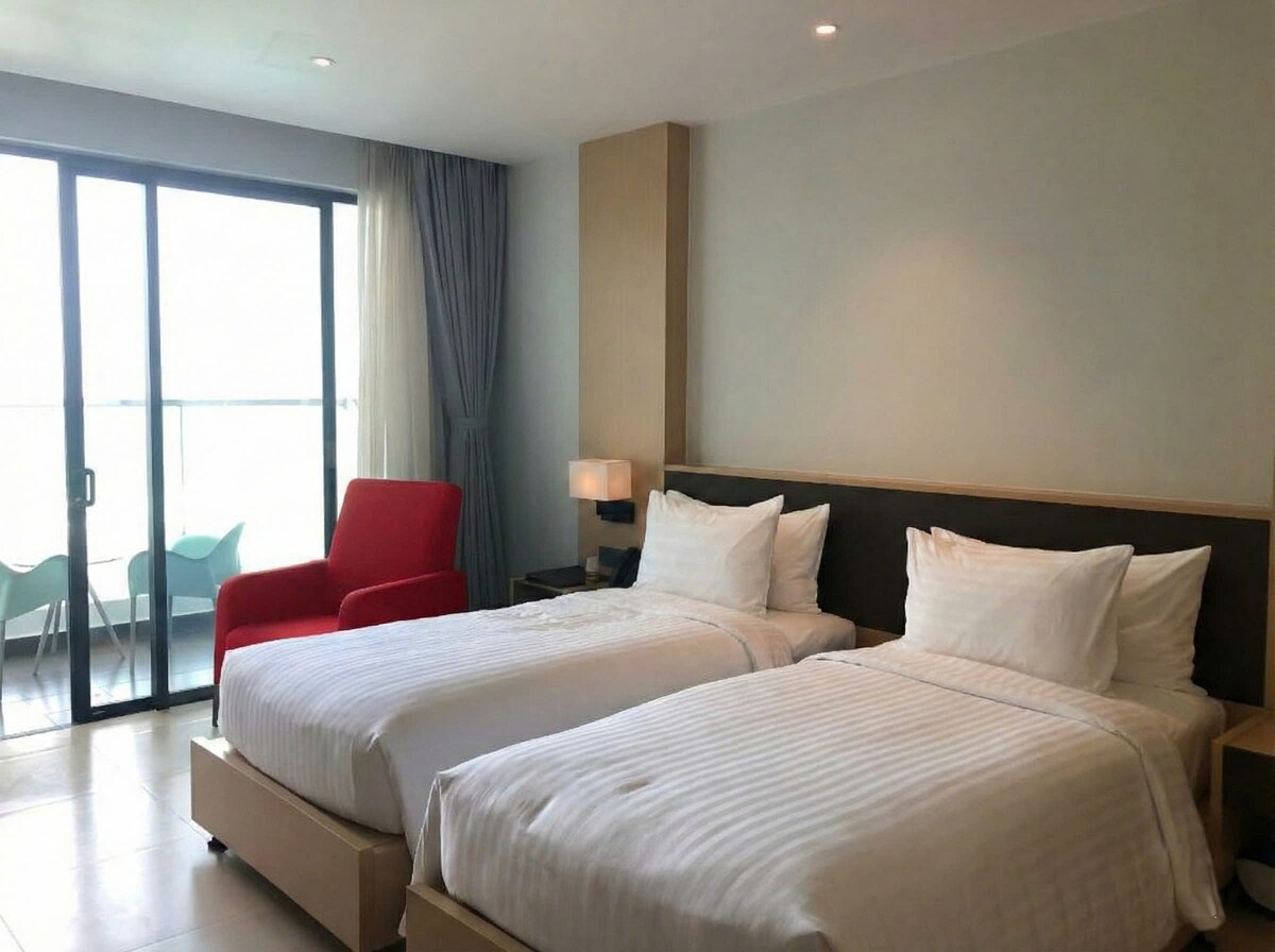 Sunflower Superior Room offers a NEWLY elegant and luxurious accommodation in city center. Cozy room decorated with minimalist interiors featuring two single beds, private bath with full toiletries, separate shower, dressing table , smart TV and refrigerator. Surrounding by plenty of restaurants, convenience stores, spas, coffee houses, entertainment spots and tourist attractions.